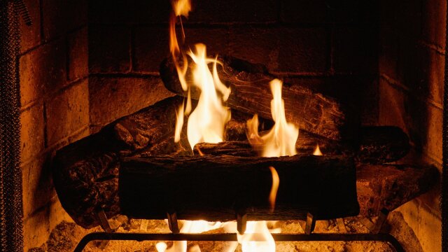 Get in the holiday spirit with this cozy, crackling fire.