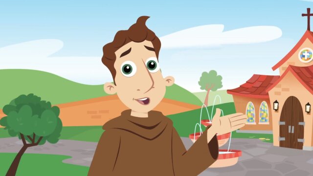Brother Francis teaches Gabriel and Maria about God and the Bible by answering their questions with easy-to-understand explanations.