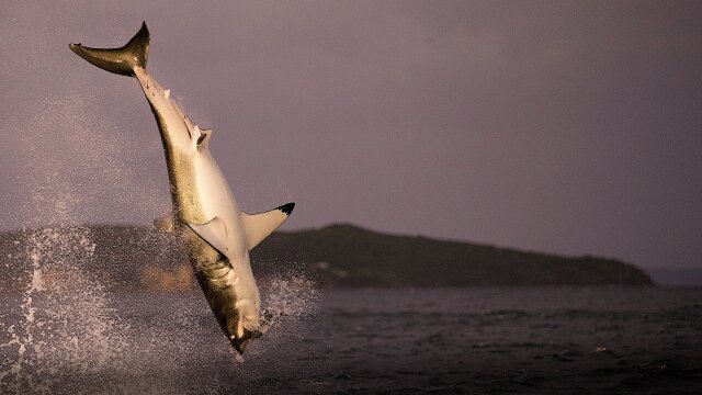 Neil Hammershlag and Enrico Gennari use a drone-towed seal decoy to study and capture harrowing and dramatic battles between sharks and seals in the waters off South Africa.