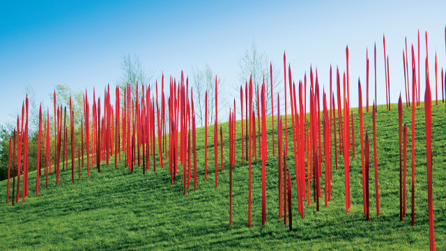 Dale Chihuly's outdoor installations include Mille Fiori, a 56-foot garden of glass and Chihuly Garden and Glass.