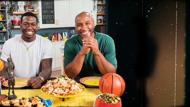 Derrell Smith, former NFL player & chef, hosts Kendrick Nunn to make Game Day Grub: Crab Rangoon Nacos, Air Fryer Pork Belly, & Salmon Rice Bites. Perfect recipes for your basketball party!