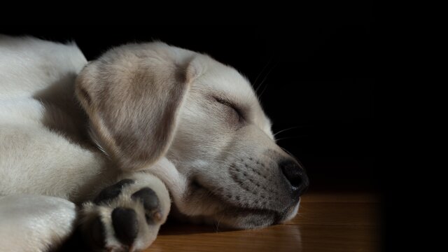 Images, sounds and music to create a relaxed and peaceful night environment for your dog .