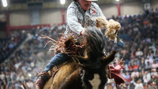 Each performance includes one section of bareback riding, steer wrestling, team roping, saddle bronc riding, calf roping, barrel racing, and bull riding.