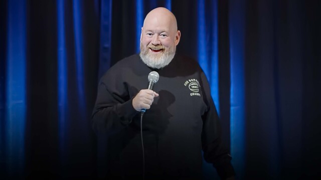 Comedian Sean Donnelley shows off his comedic skills to a music club in Raleigh, NC.