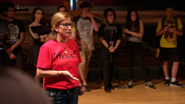 Marjory Stoneman Douglas High School drama teacher Melody Herzfeld and her theater students return to school and resolve to continue with their musical production following the mass shooting that killed 17 teachers and students.