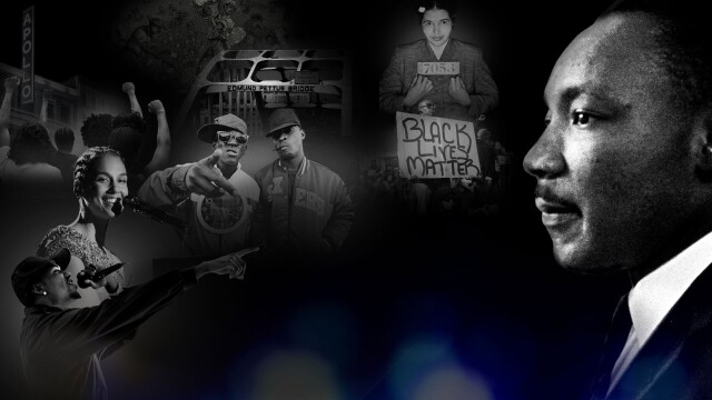 Tracing the journey from field hollers to gospel, blues to jazz and R&B to rap, as creative artists align themselves and their songs to advance the cause of justice for all.