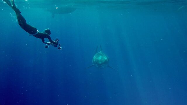 Off the coast of Oahu, divers and photographers experience one of the most incredible great white shark encounters ever caught on camera, featuring the two largest great whites ever filmed in Hawaii, including the shark known as Deep Blue.