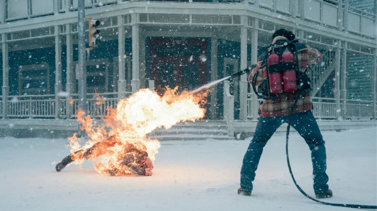 The episode concludes with parallel scenes of devastation: inside Jackson, survivors assess the damage from the Infected attack, while outside, Ellie, Jesse and Dina transport Joel’s wrapped body back to the settlement. This haunting final image—Joel’s body being dragged through the snow—symbolizes both an ending and a beginning.