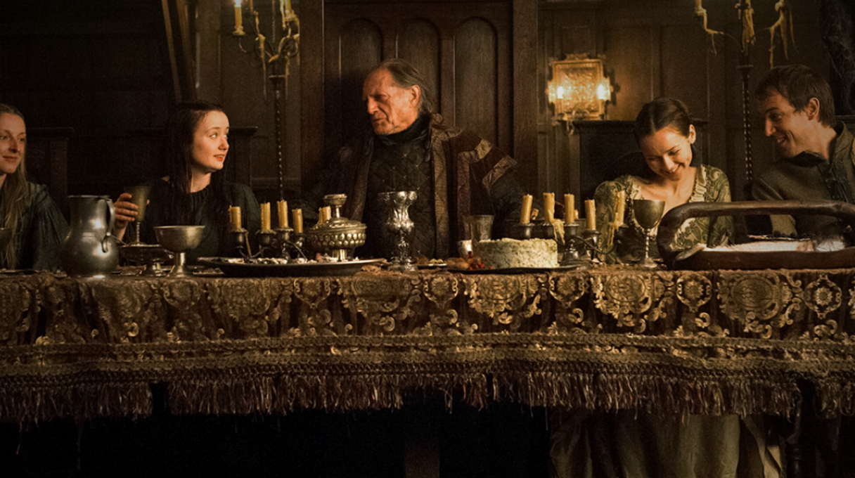 One more misdirect, though more subtle, centers around the laws of hospitality. While it was a bigger deal in the books (and, actually, in Ancient Greece), we get a brief glimpse into the unspoken pact that welcoming someone into your house brings them under your protection. When the Starks first arrive at The Twins, they ceremonially eat bread and salt – a custom that is supposed to bind the Freys to be hospitable. Not so much, it turns out. But anyone familiar with the custom was immediately put a little more at ease to see it on screen. The scene ends with Walder Frey (David Bradley) predicting, accurately but misleadingly, “The wine will flow red, and the music will play loud, and we’ll put this mess behind us.”